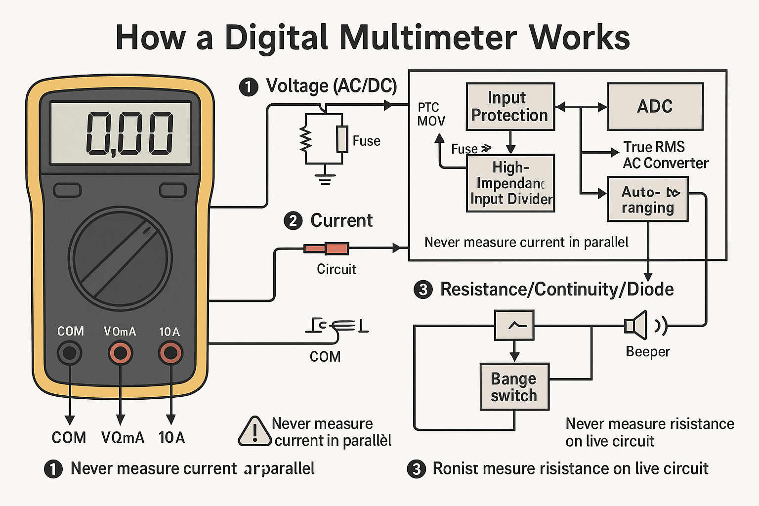 A digital multimeter (DMM) is one of the most indispensable tools for anyone working with electronics, DIY electrical work, and troubleshooting electrical circuits. Unlike a single-purpose meter (voltmeter, ammeter, or ohmmeter), a multimeter is a combined instrument that can measure voltage, current, resistance, continuity, and sometimes many other parameters.